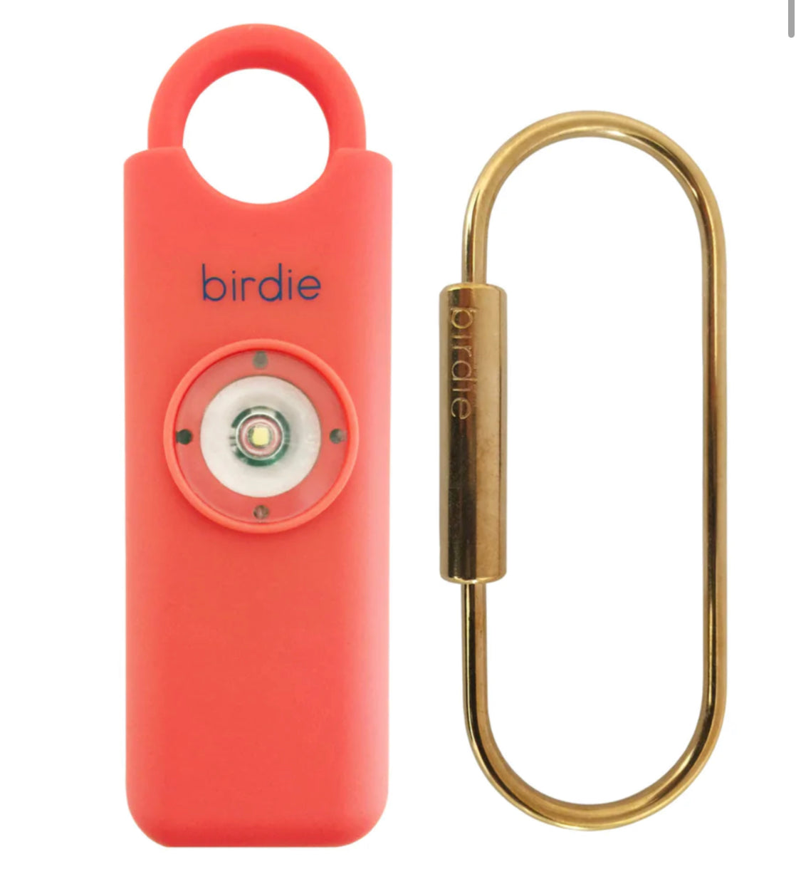 Light-weight with a pop of color, the birdie personal safety alarm is easy to spot in your bag. To help to deter an attack, activate the LOUD siren and flashing strobe-light.