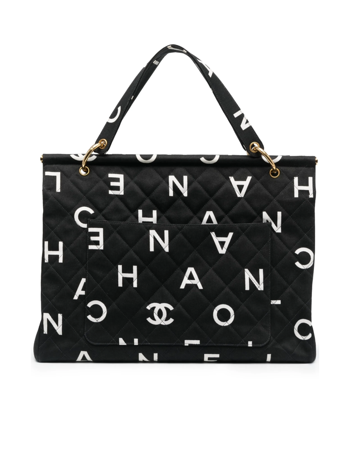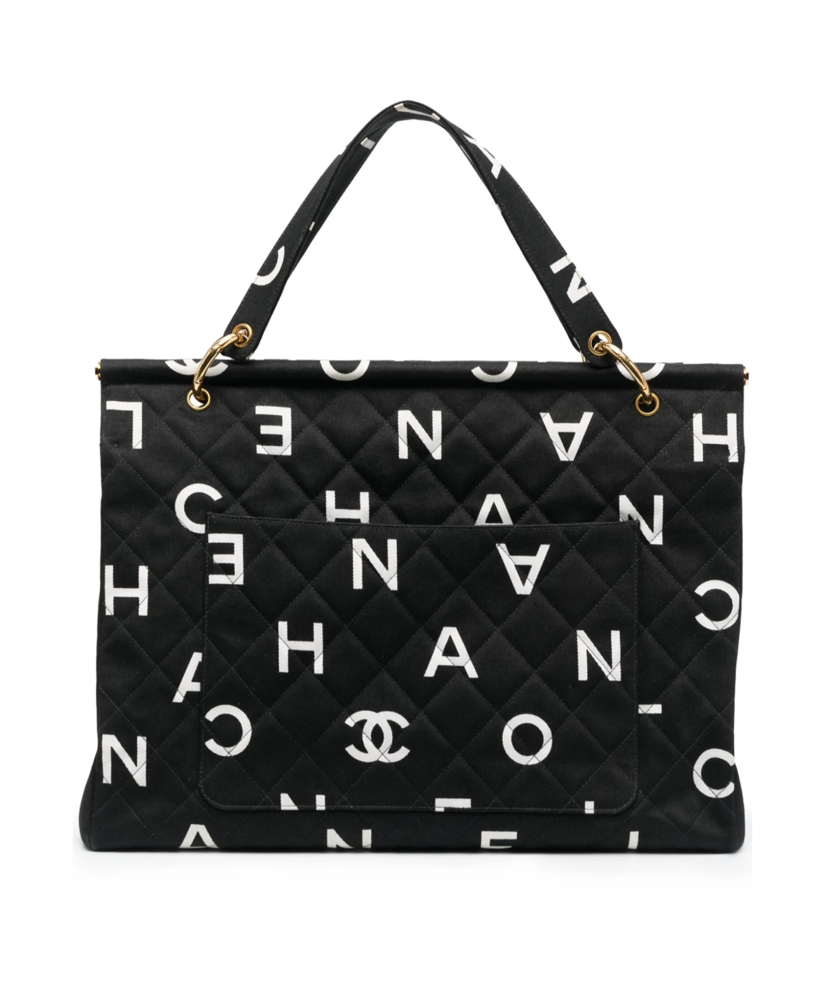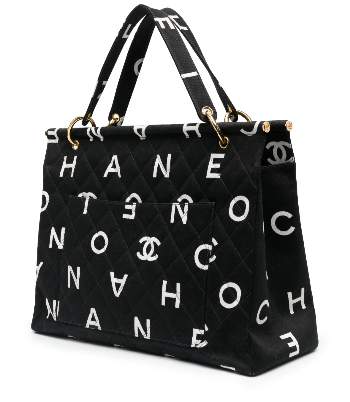 Circa 1996-1997. Canvas. Diamond Quilting. All-over logo print. Signature interlocking CC logo. Two top handles. Internal zip-fastening pocket. Internal logo stamp. Slip pocket to the front. Slip pocket to the rear. Gold tone hardware. Includes dustbag.