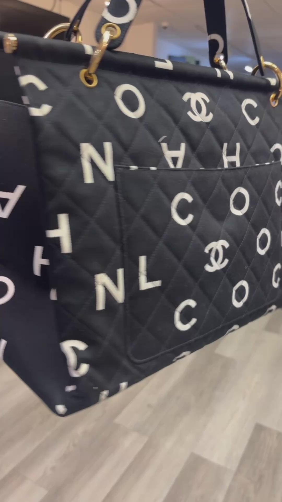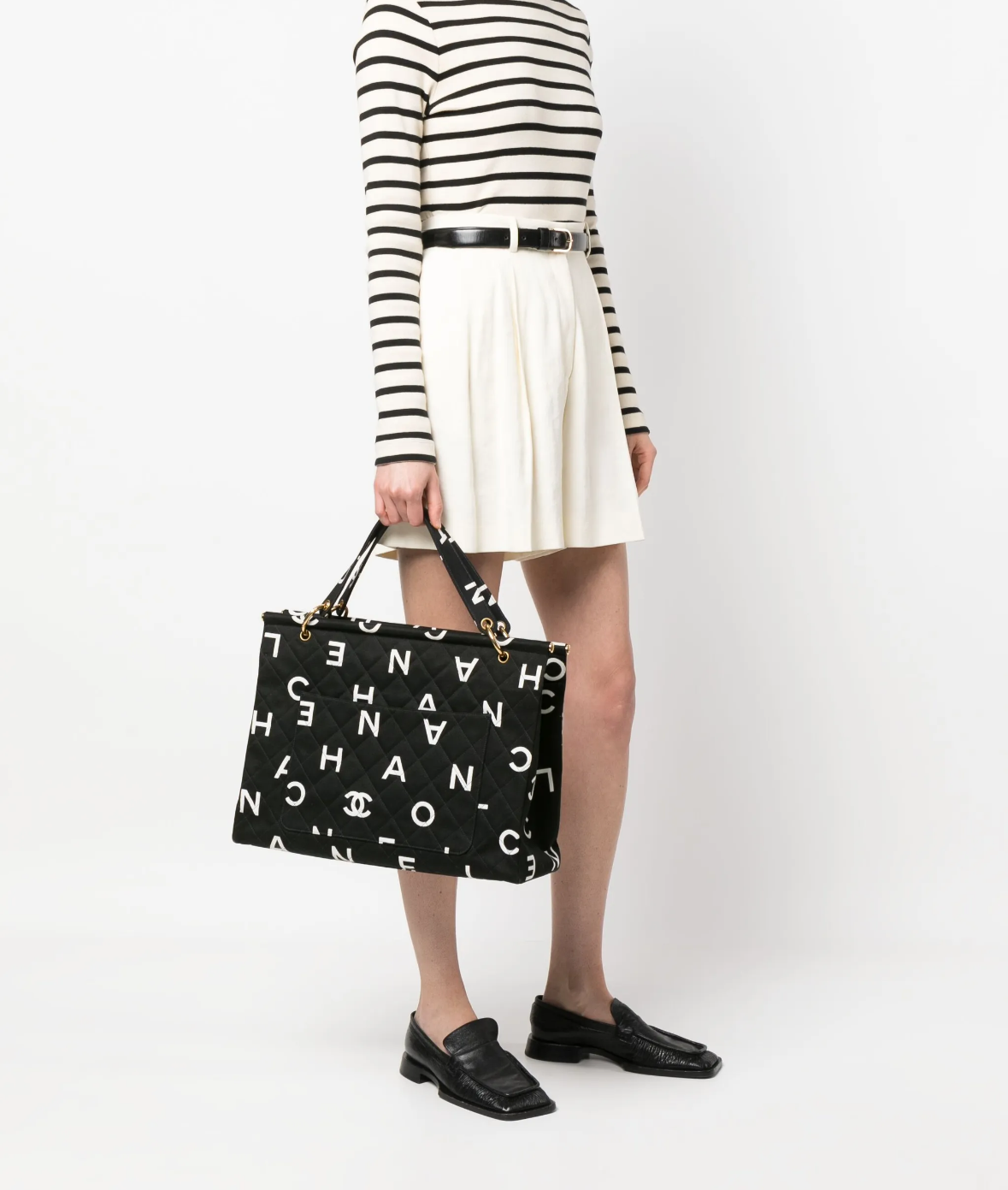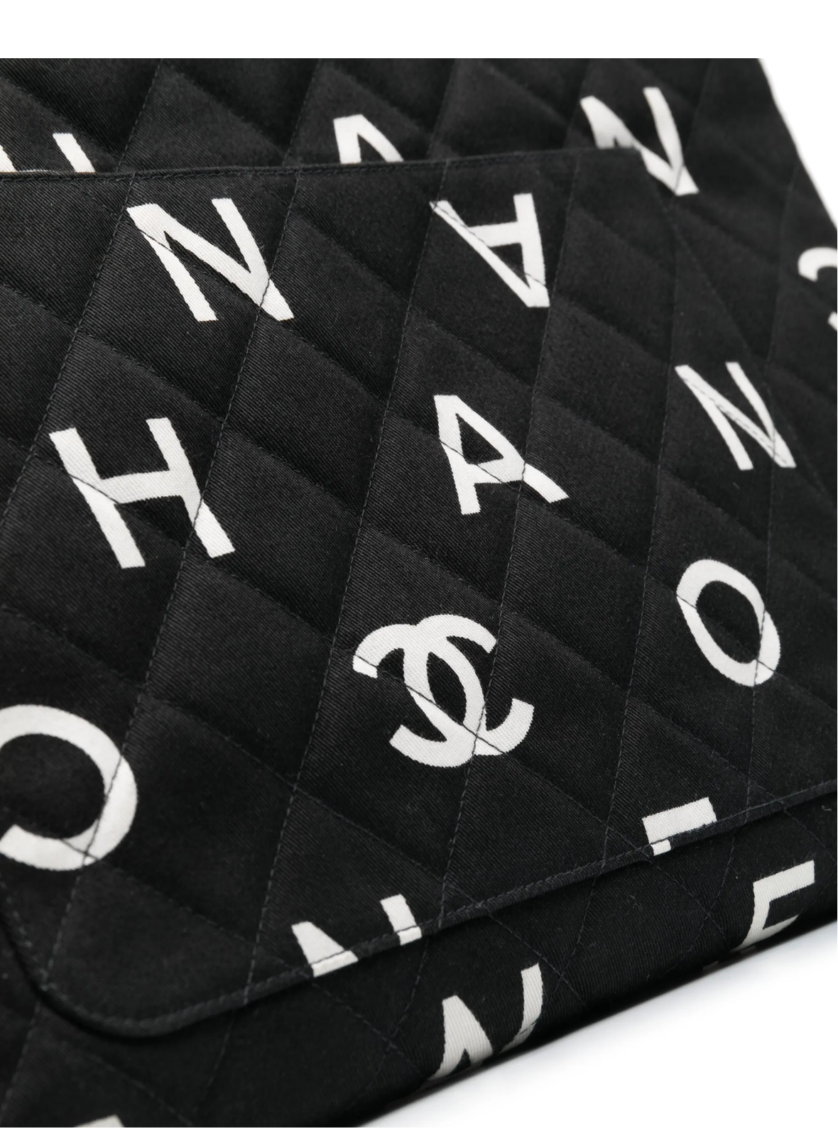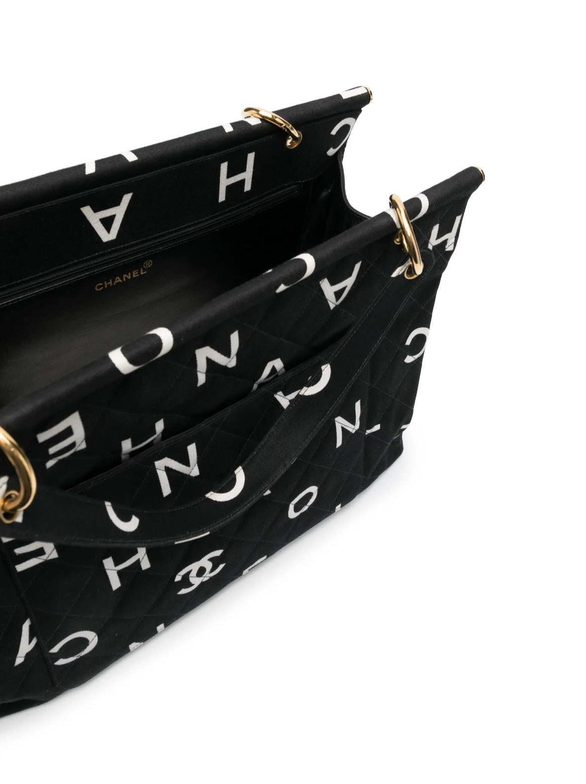 Circa 1996-1997. Canvas. Diamond Quilting. All-over logo print. Signature interlocking CC logo. Two top handles. Internal zip-fastening pocket. Internal logo stamp. Slip pocket to the front. Slip pocket to the rear. Gold tone hardware. Includes dustbag.